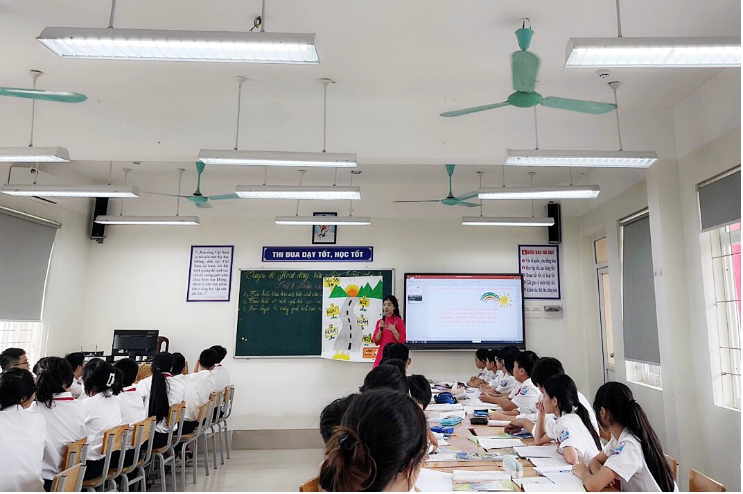 Với tâm thế tự tin trên bục giảng, cô giáo Nguyễn Thùy Linh đã dẫn dắt học sinh vào vấn đề một cách nhẹ nhàng.