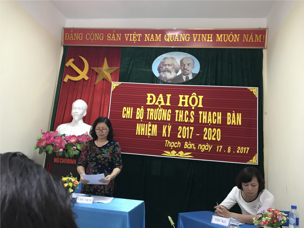 Thực hiện sự chỉ đạo của Đảng ủy phường Thạch Bàn, ngày 17 tháng 08 năm 2017 Chi bộ trường THCS Thạch Bàn đã tổ chức thành công Đại hội Chi bộ nhiệm kỳ 2017 - 2020.