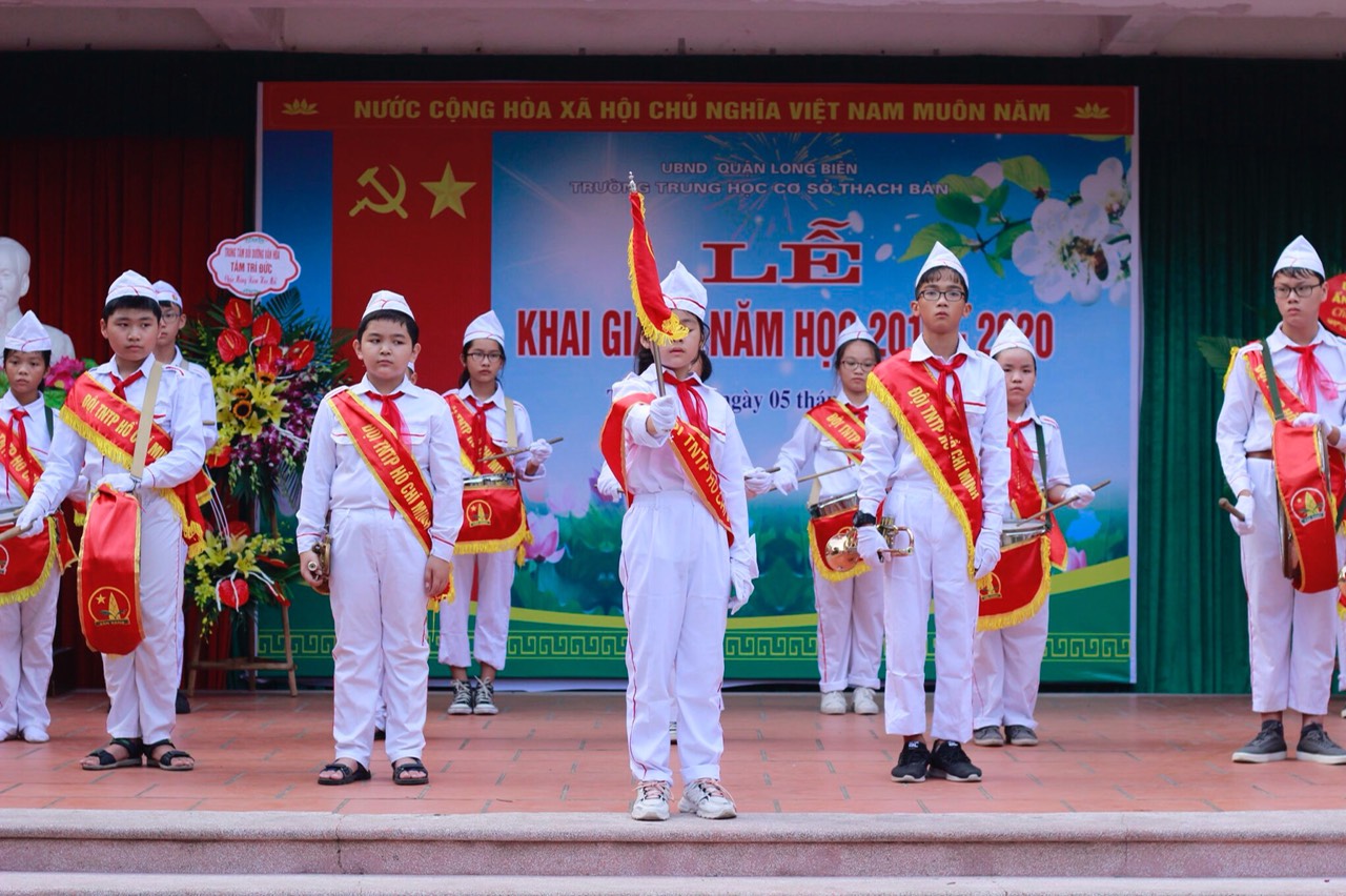 Gửi theo âm vang trống hiệu nghi thức chào cờ và Quốc ca thiêng liêng, trang trọng là bao niềm tin và hi vọng của thầy và trò Trường THCS Thạch Bàn chính thức bước sang một trang sử mới.