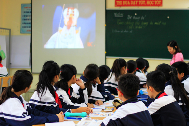 Đội múa Lân được các bạn học sinh đưa vào tiết học Mĩ thuật một cách tự nhiên, hợp lý