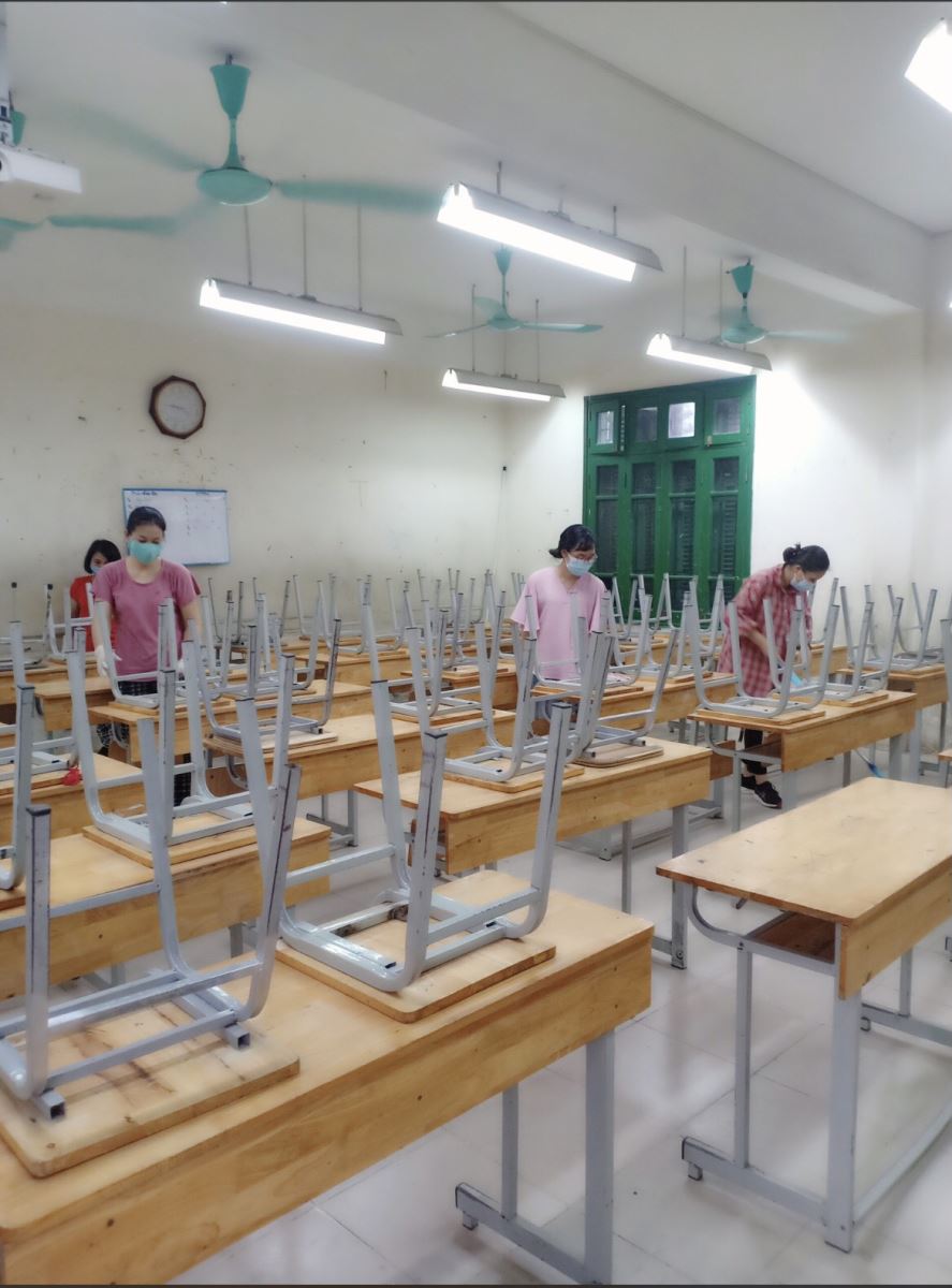 Với tinh thần tích cực, trách nhiệm, các đồng chí cán bộ, giáo viên đã có mặt từ sớm để thực hiện công tác tổng vệ sinh môi trường sư phạm. Trong một thời gian ngắn nhưng tập trung cao, các đồng chí CBGVNV nhà trường đã nhanh chóng và khẩn trương làm công tác vệ sinh ở tất cả các phòng phòng, phòng chức năng, cửa sổ, cửa ra vào, bàn nghế, lan can đặc biệt các tay nắm cửa, nền nhà được lau dọn và khử khuẩn sạch sẽ. Sân trường, hành lang, bồn cây… khuôn viên nhà trường đã được dọn dẹp sạch sẽ tuyệt đối không để nước đọng làm nơi sinh sôi và phát triển của bọ gậy, muỗi. Trong các phòng học, các đồng chí giáo viên chủ nhiệm cùng với sự hỗ trợ của ban phụ huynh học sinh tích cực lau dọn lớp học, khử khuẩn các bề mặt, sắp xếp lại cơ sở vật chất đảm bảo sạch sẽ và thông thoáng. Nhà trường đã trang bị đầy đủ nước rửa tay cho toàn bộ nhà vệ sinh, các phòng học, hành lang và phòng làm việc để bảo đảm an toàn nhất cho học sinh, giáo viên của nhà trường.
